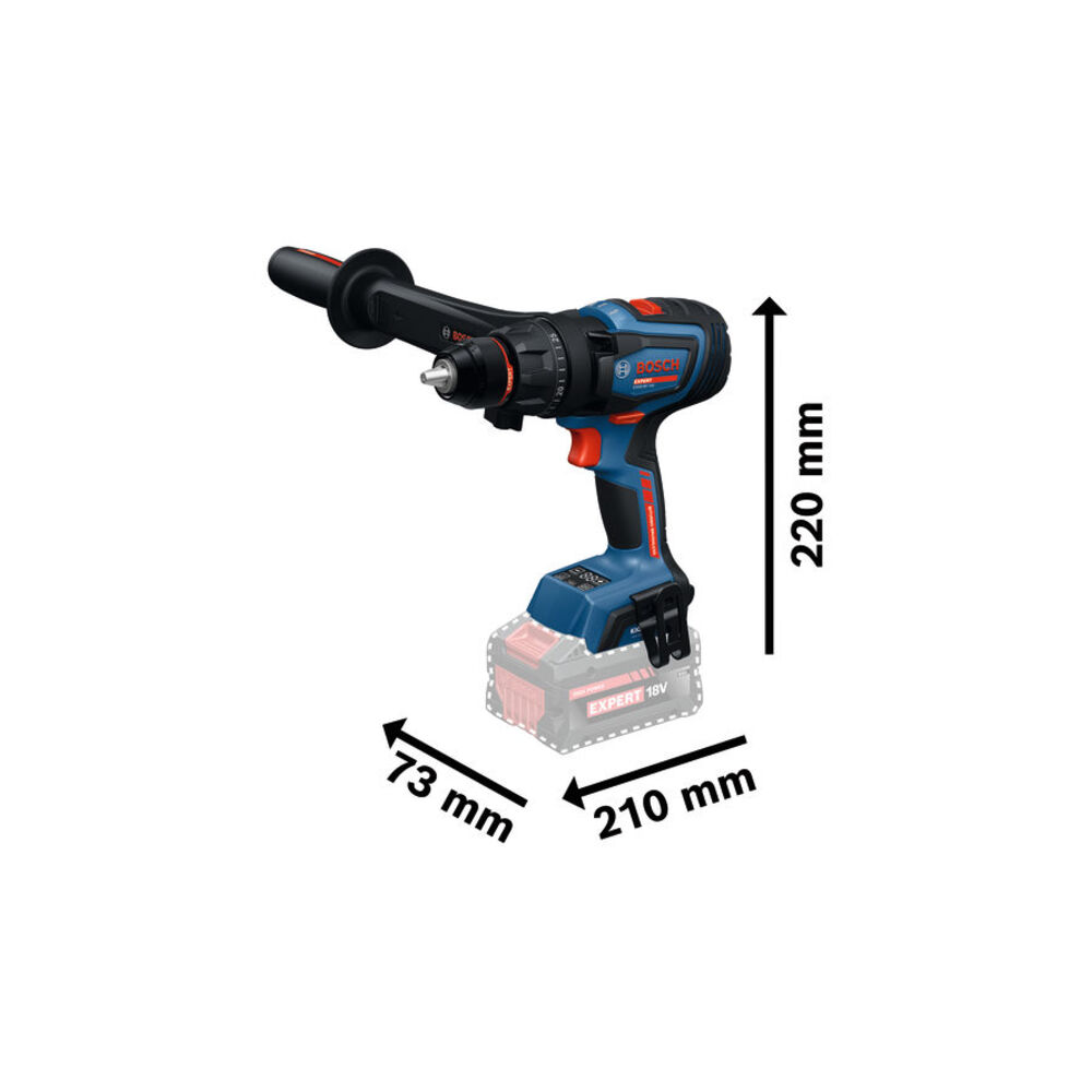 E' dotato di un'impugnatura ausiliaria che si regola senza problemi in qualsiasi posizione. La selezione rapida della modalità consente di scegliere tra foratura, foratura con percussione e avvitamento.